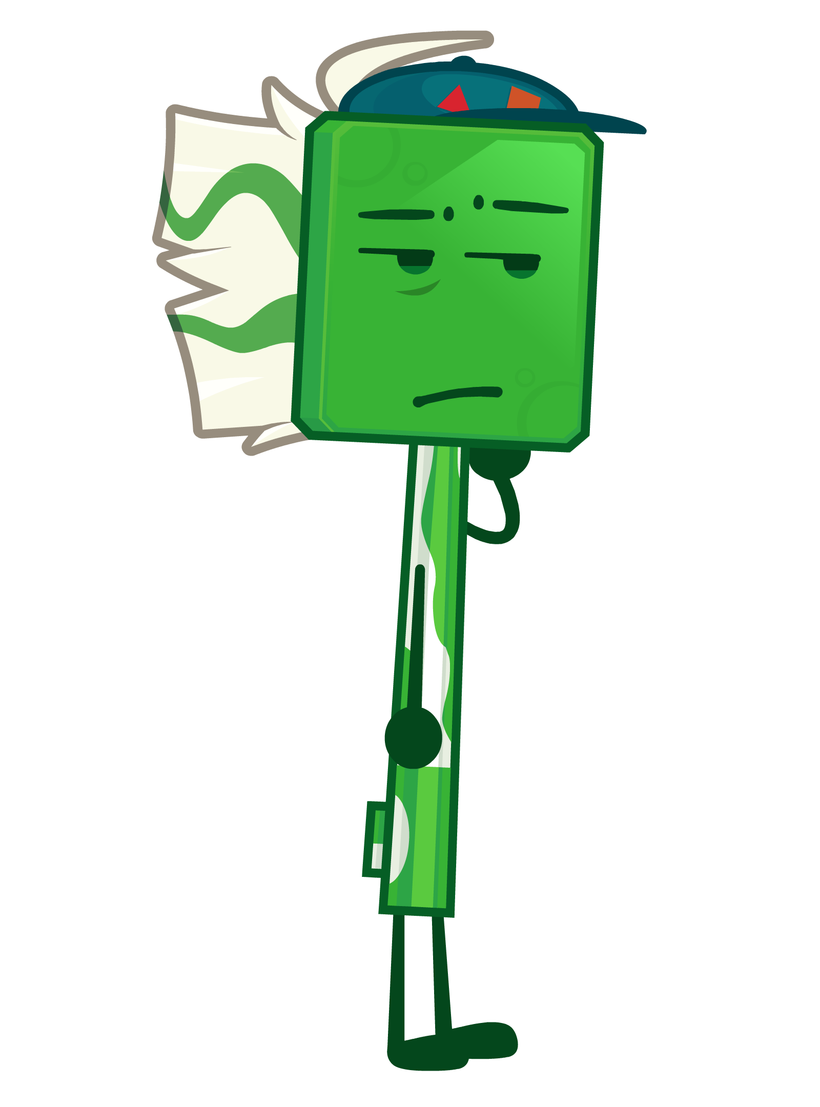 Bristles is a “cyborg” (half object from his mother and half robot from his father).
